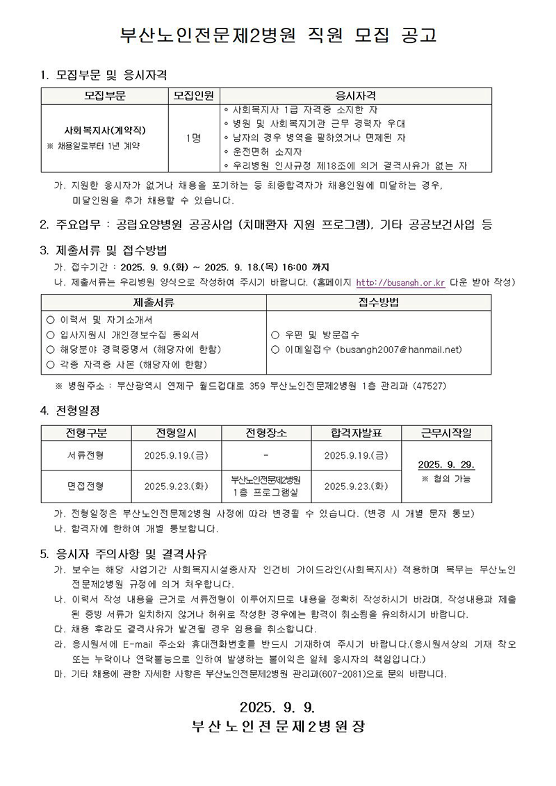 사회복지사 모집 공고